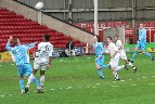 Leon Morgan heads it forward |