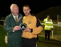 Chairman Mick Brady making a presentation for Josh Blake for having made